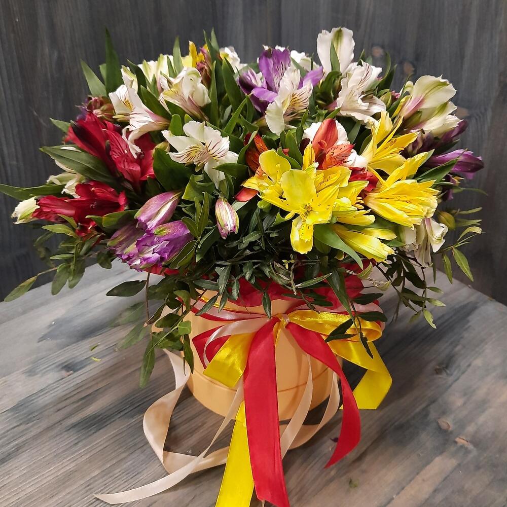 Альстромерия в шляпной коробке