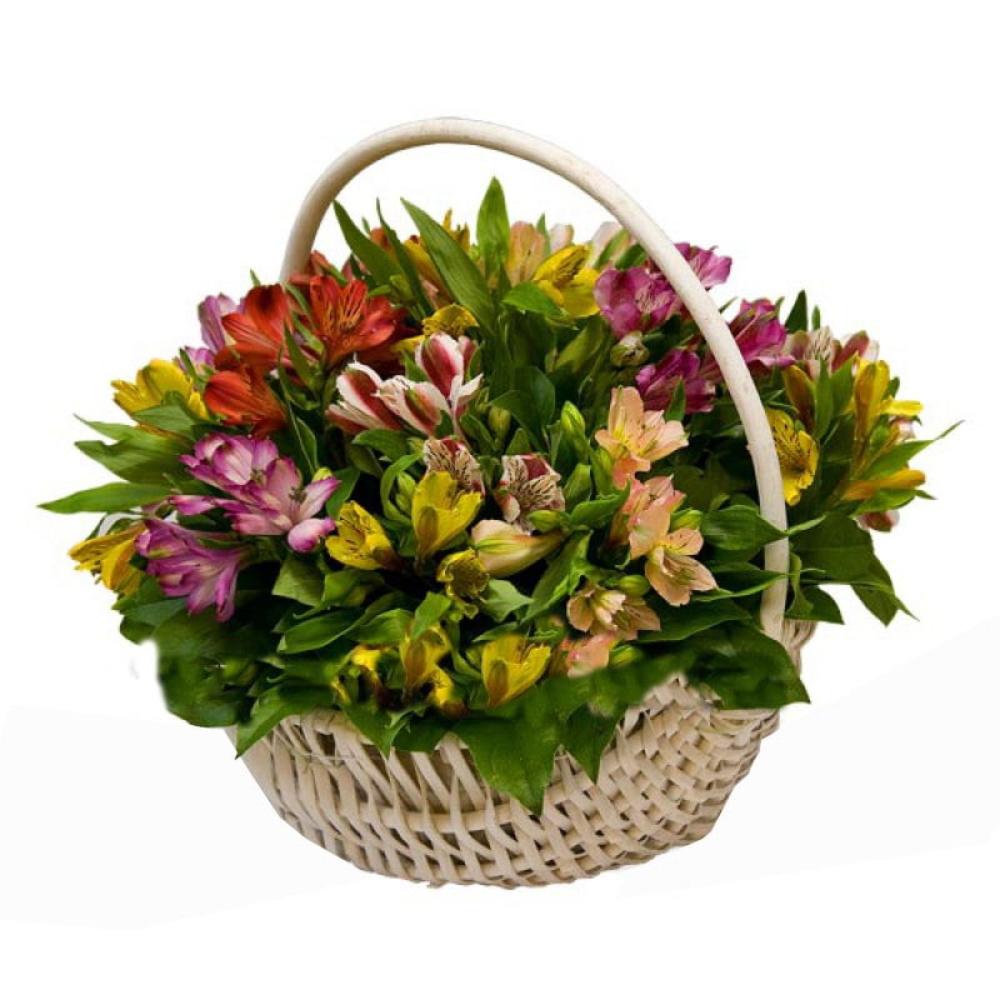 Альстромерия – 21 шт.Оазис – 2 шт.Корзина – 1 шт.зелень декоративная – 5 шт.