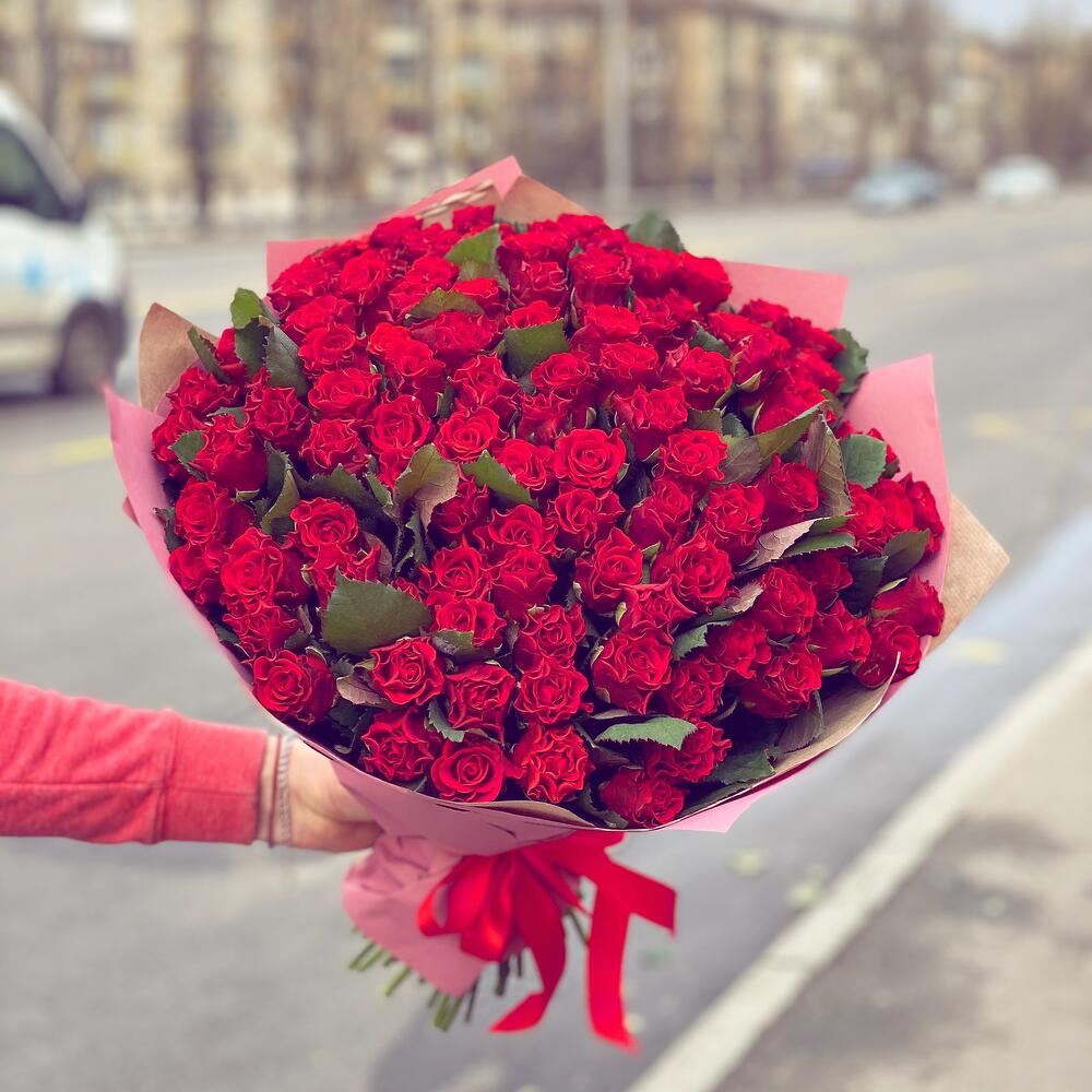 Букет из 51 красных роз premium 60-70 см (Эквадор) в стильной упаковке