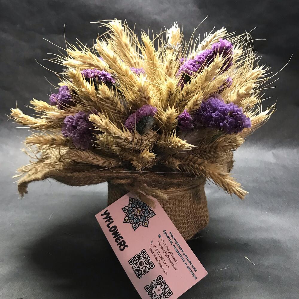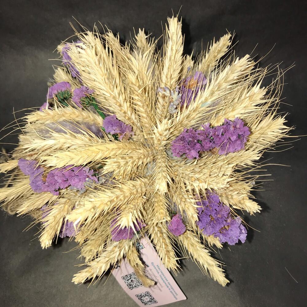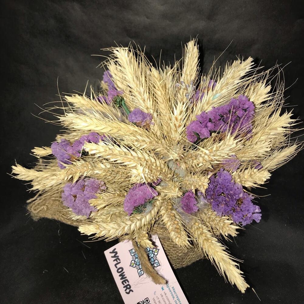 «Лавандовое созвездие» Букет из розы, гвоздики, статица и хлопка