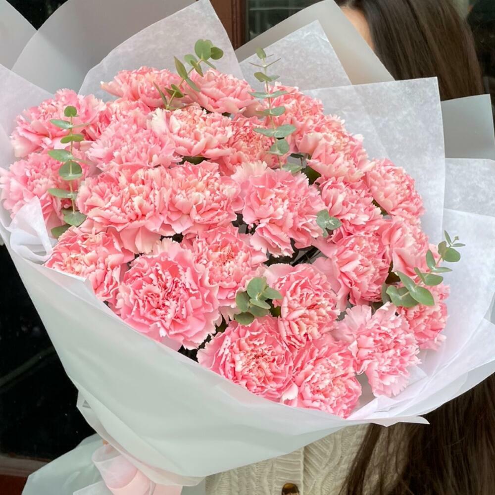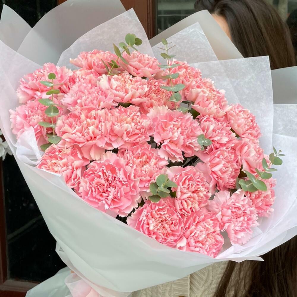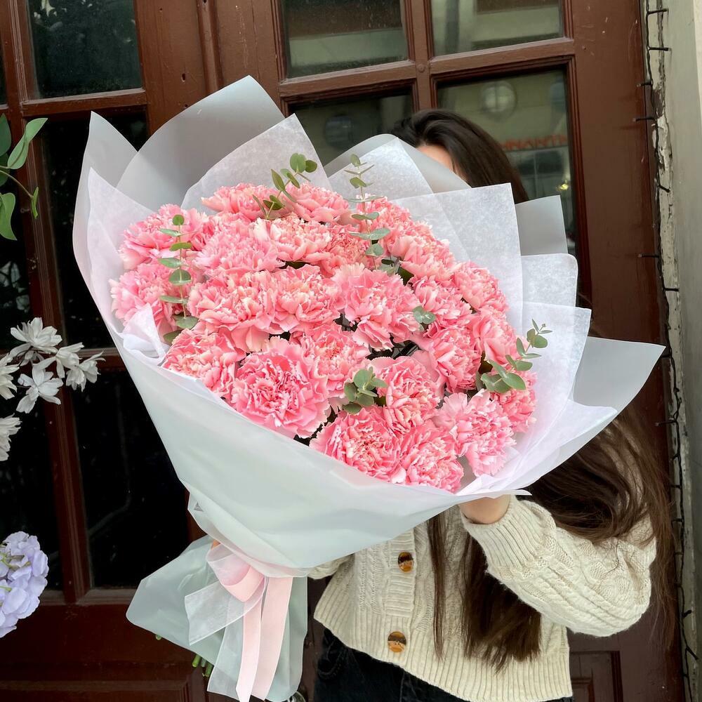 Гвоздики, Пионовидные розы, Розы