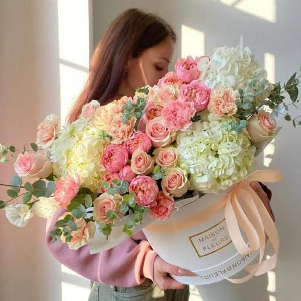 Букет из цветов в декоративной коробке "Вечер в Париже"