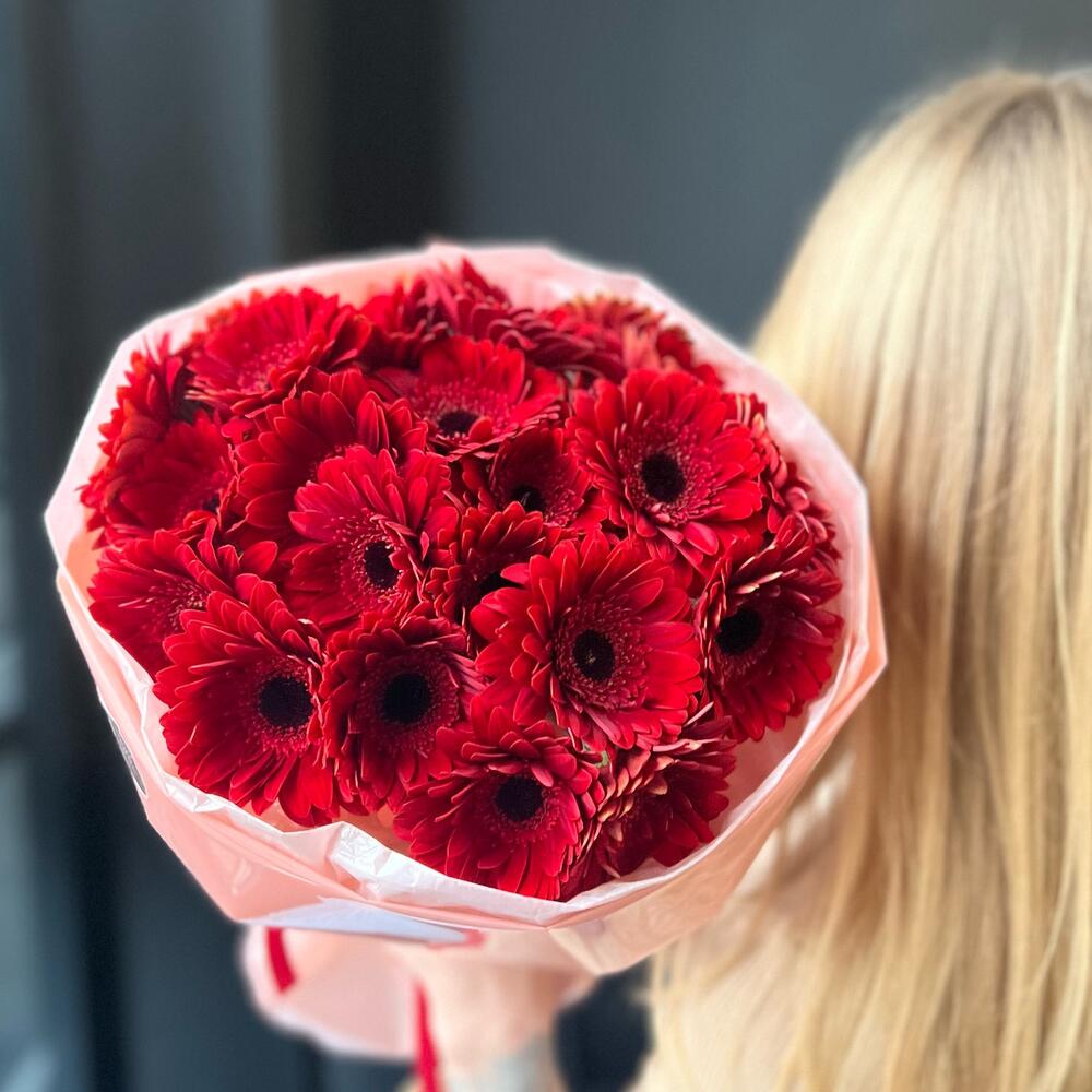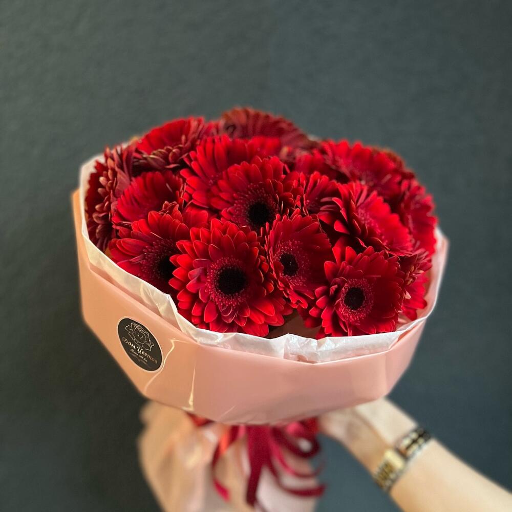 Гербера – 25 шт.декоративная упаковка – 1 шт.Атласная лента – 1 шт.