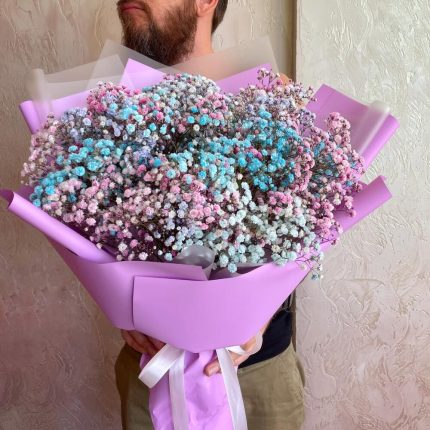 Гипсофила радужная в розовой коробке. Букет 133 ALMOND ROSES