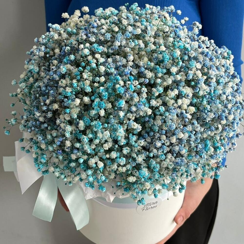Большая коробка гипсофилы в бирюзово-голубой гамме