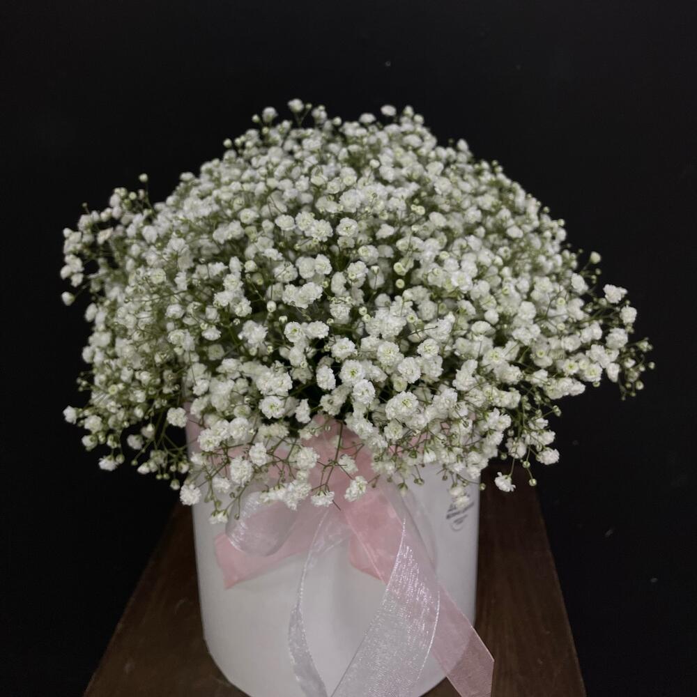 Коробка шляпная – 1 шт.гипсофила белая – 9 шт.