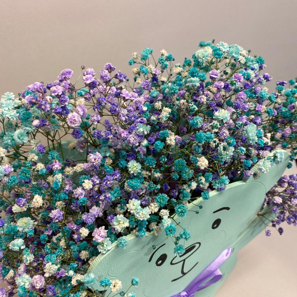 гипсофила радужная – 7 шт.Ящик деревянный – 1 шт.Оазис флористический – 1 шт.