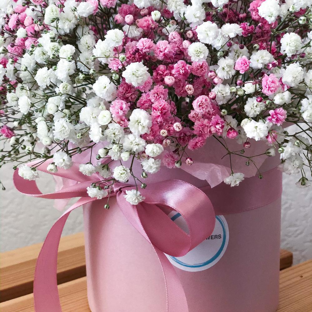 Гипсофила – 5 шт.Коробка шляпная – 1 шт.Лента атласная – 1 шт.Губка флористическая – 1 шт.