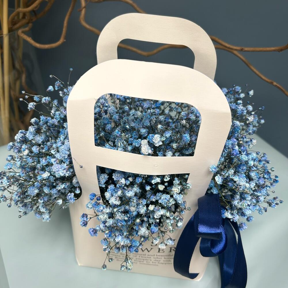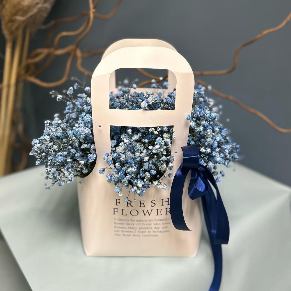 Голубая гипсофила в крафтовой сумке