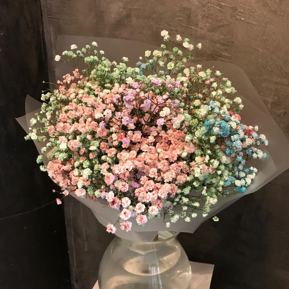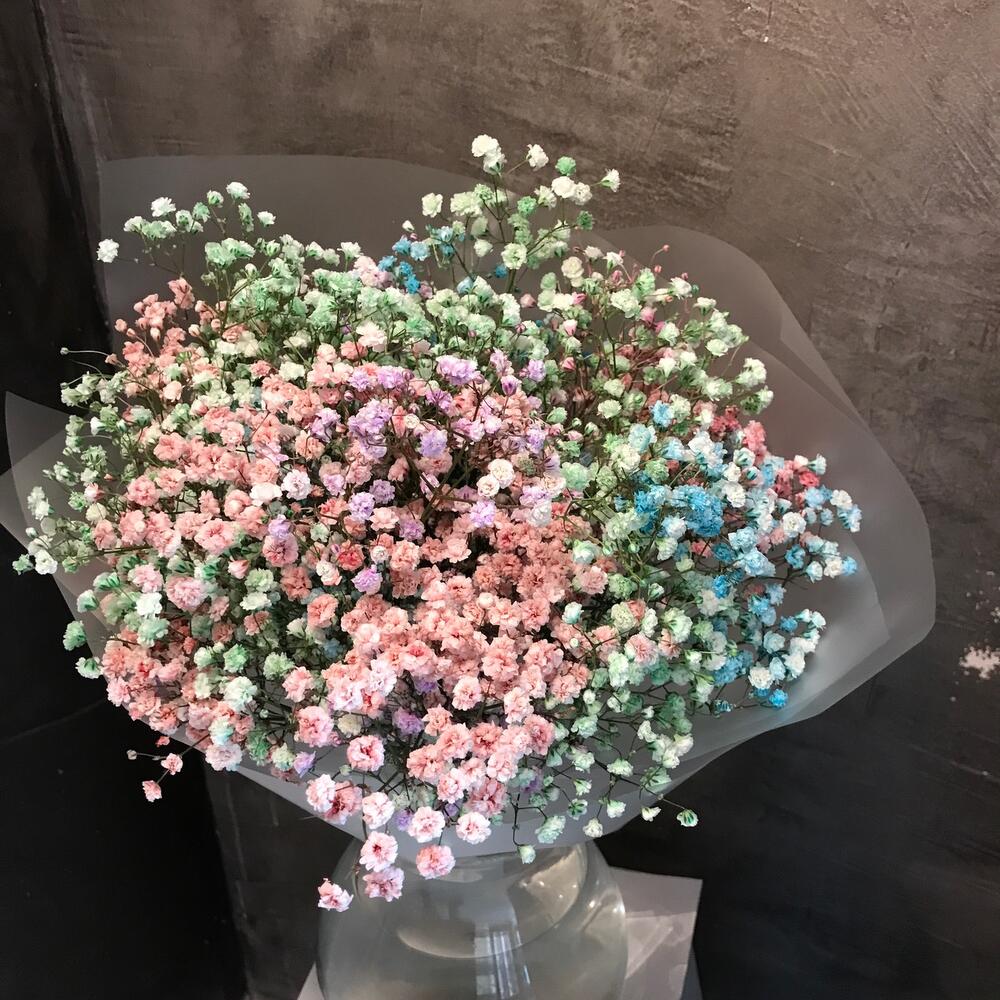 Монобукет из радужной гипсафилы