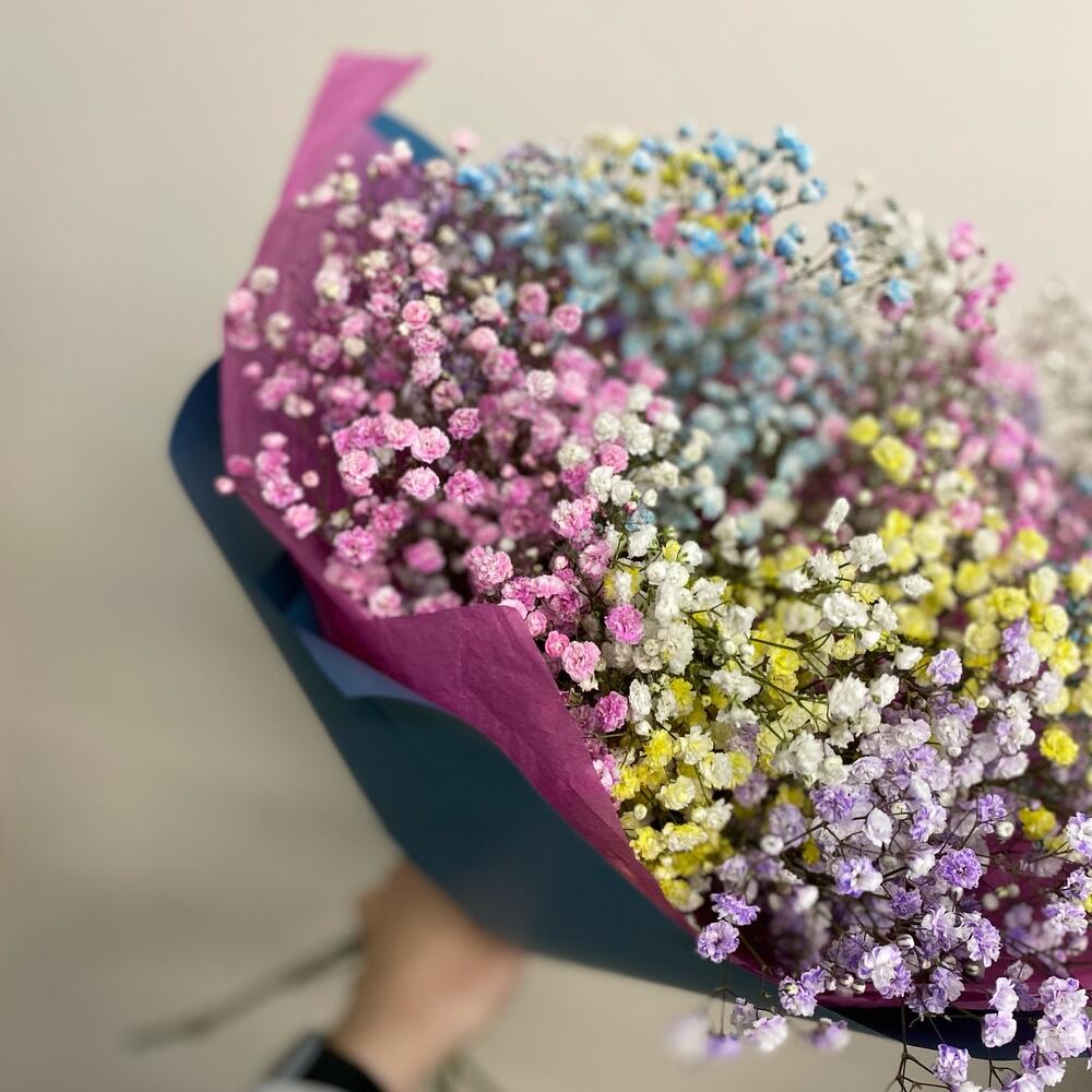 Гипсофила – 7 шт.Лента атласная – 3 шт.Тишью – 3 шт.Упаковка дизайнерская – 3 шт.