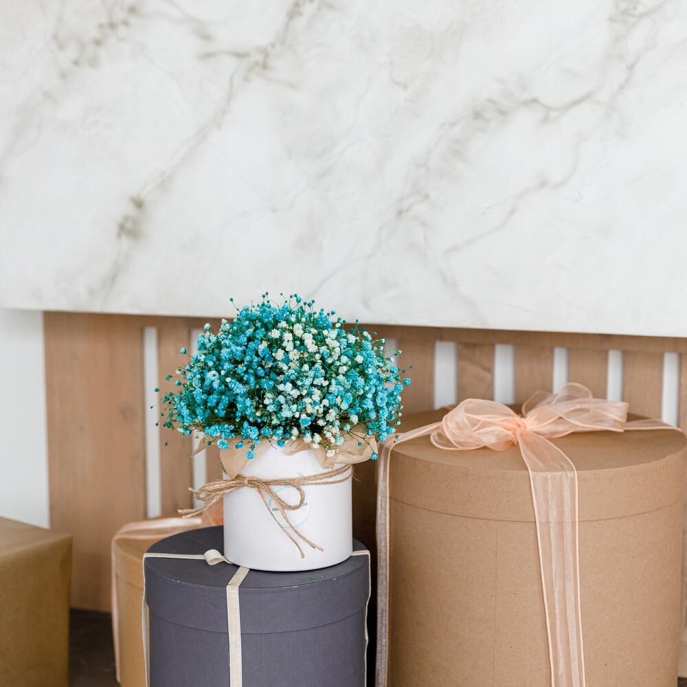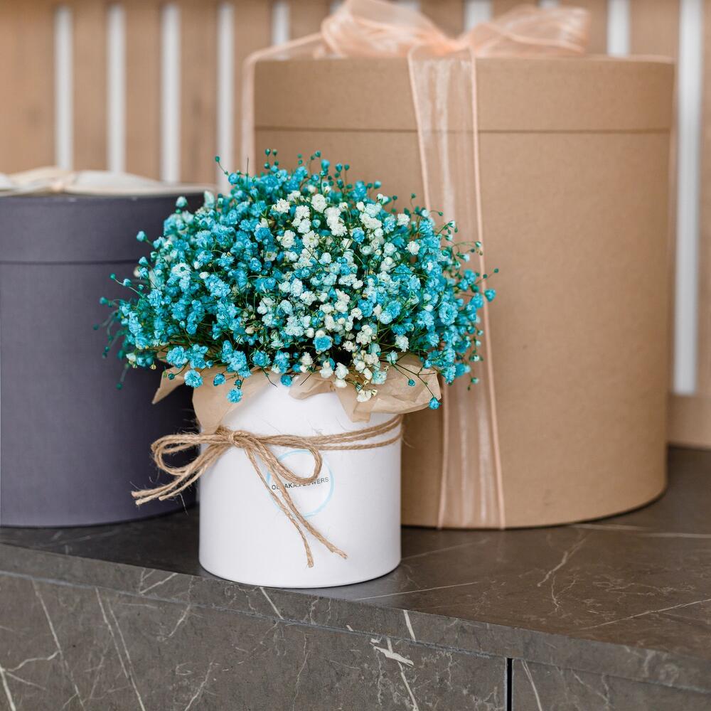Гипсофила – 5 шт.Коробка шляпная – 1 шт.Оазис флористический – 1 шт.Тишью – 4 шт.