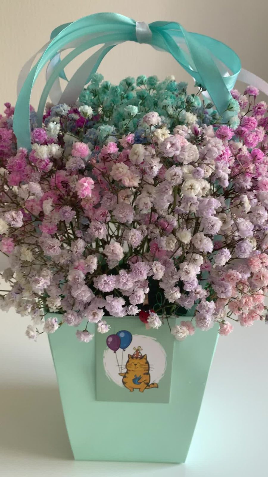 Гипсофила – 7 шт.Оазис флористический – 1 шт.Лента атласная – 2 шт.Сумочка картонная – 1 шт.