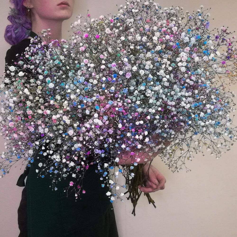 Пышный букет радужной гипсофилы