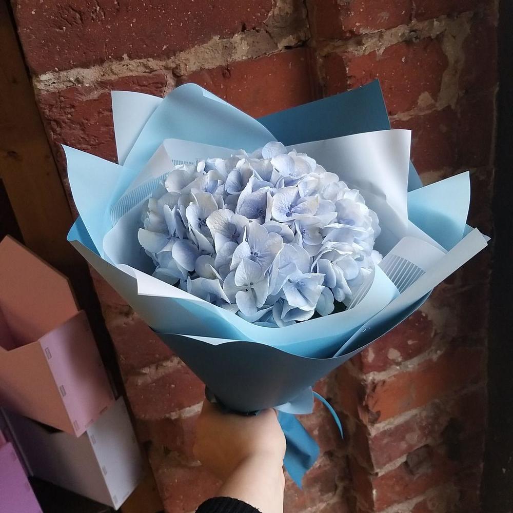 Букет из голубых и фиолетовых гортензий
