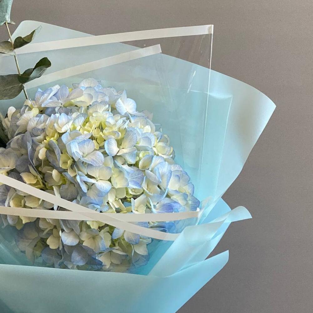 Гортензия – 1 шт.Эвкалипт – 1 шт.Упаковка дизайнерская – 1 шт.Стифа – 1 шт.памятка по уходу и средство для продления жизни цветов – 1 шт.