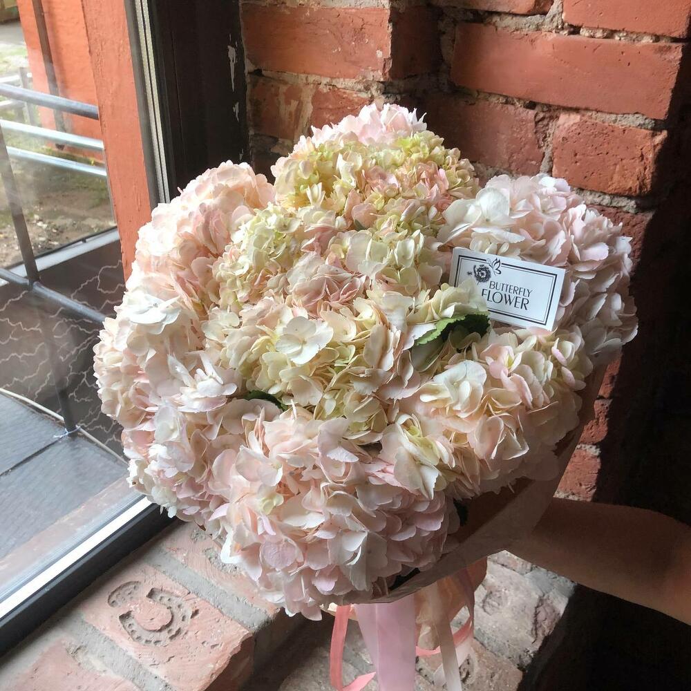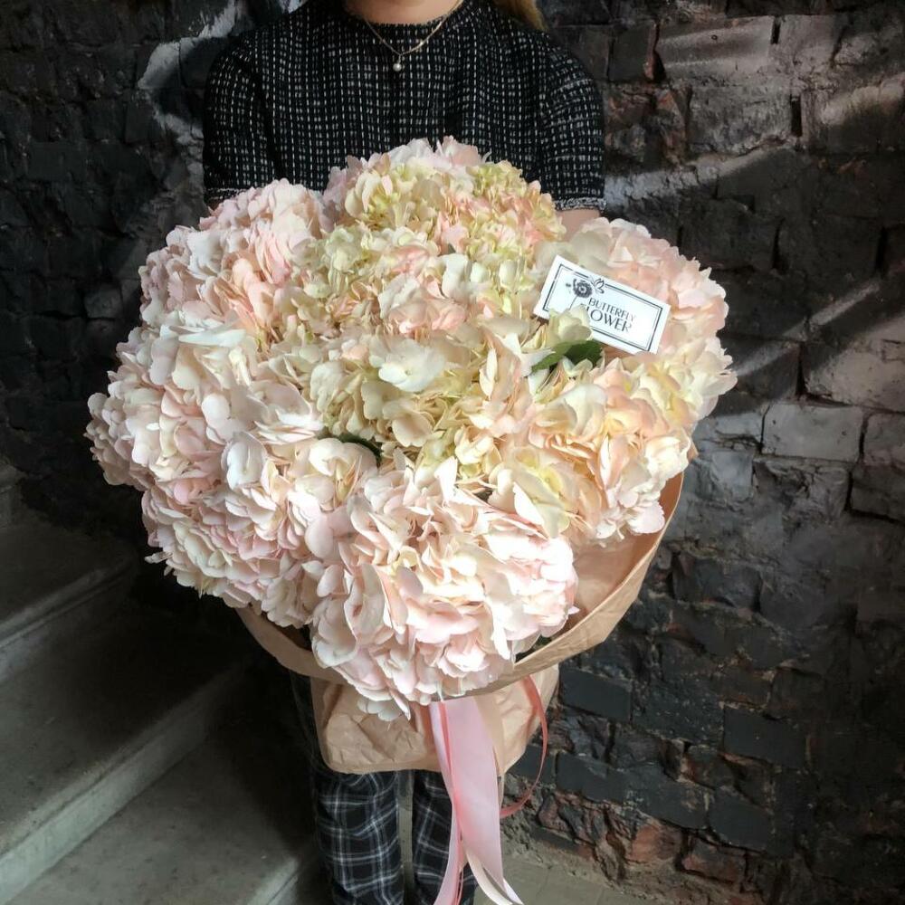 Красивый букет из 7 нежно-розовых гортензий "Суоранда"