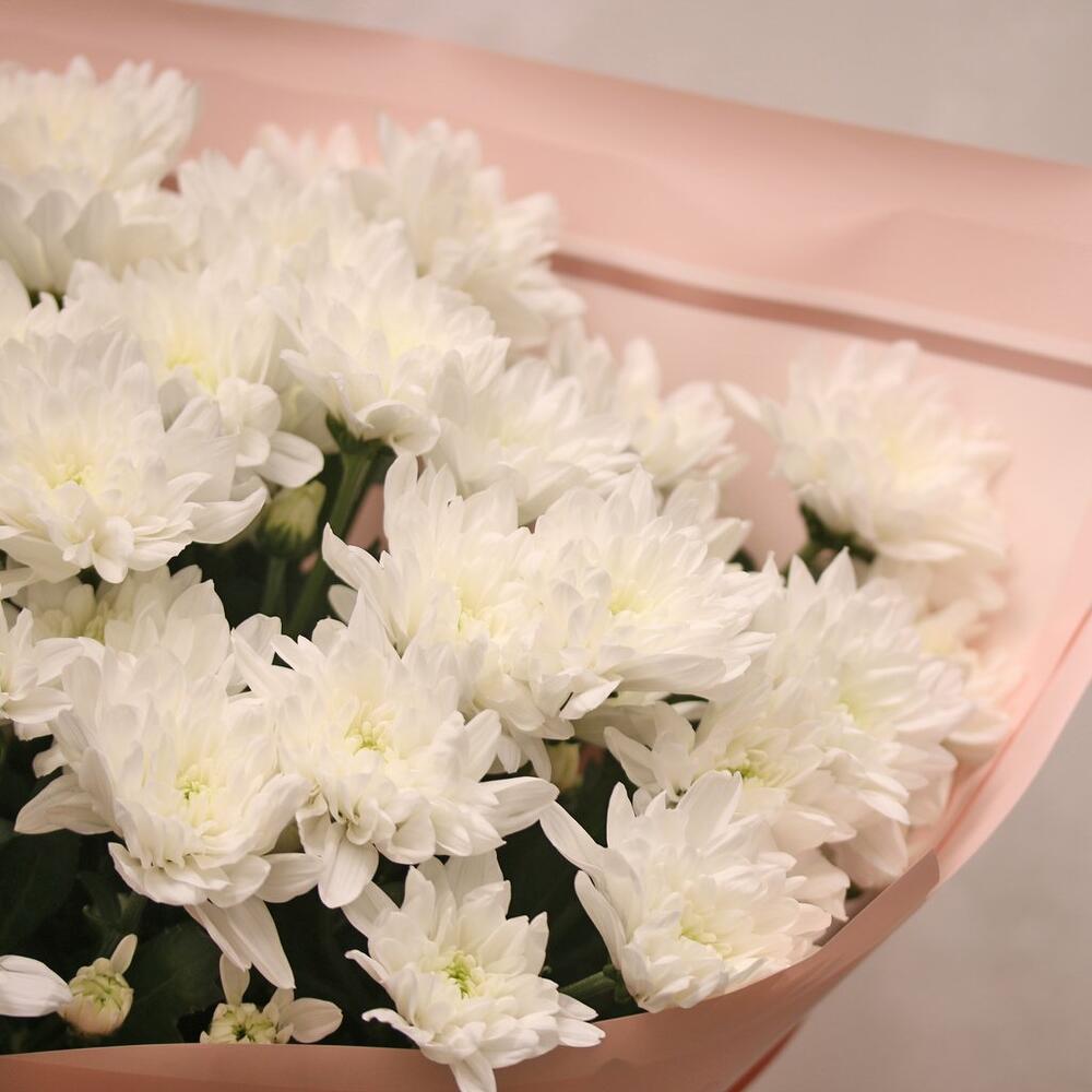 Букет из 9 белых кустовых хризантем в стильной упаковке