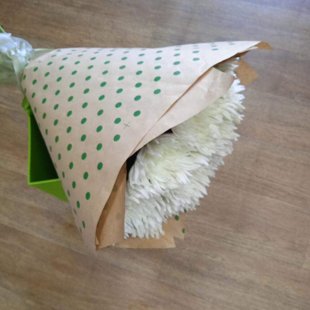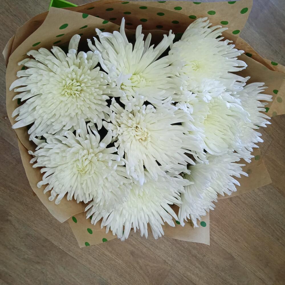 Хризантема одноголовая – 9 шт.Упаковка крафт – 1 шт.Лента – 1 шт.