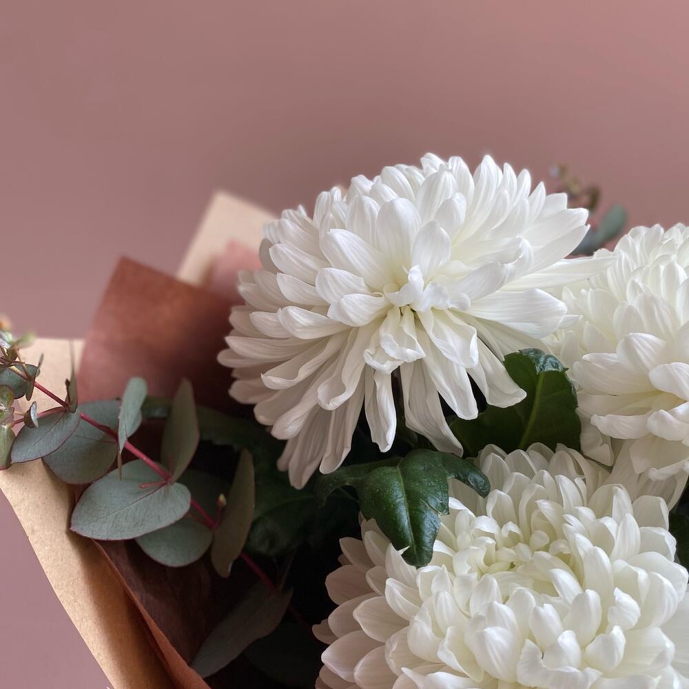 Букет из хризантем «Стиль» (одноголовая Хризантема Антонов, эвкалипт)