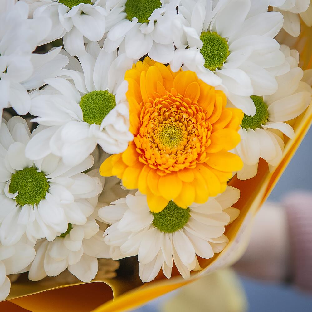 Букет из хризантемы и желтых гербер