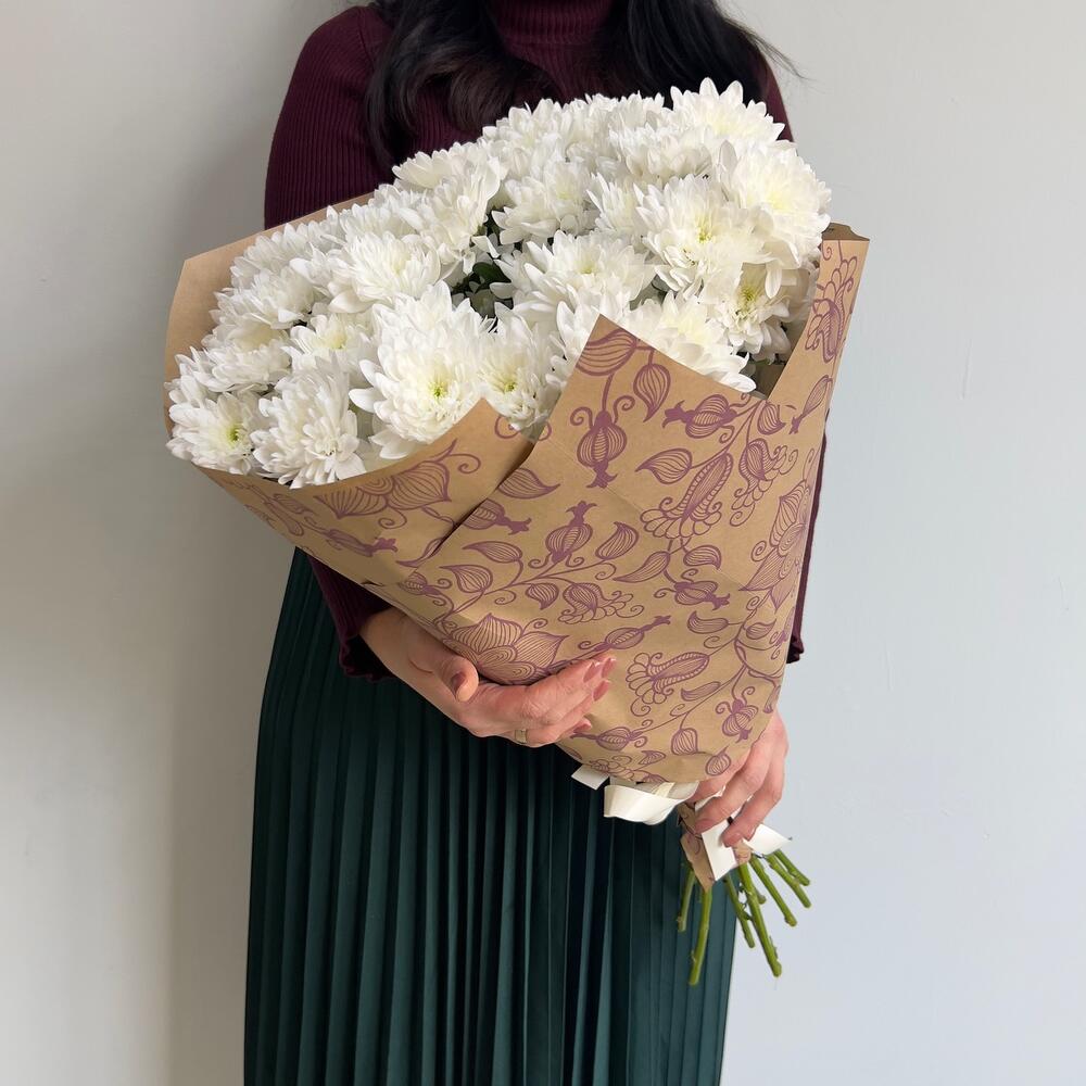 Крафт упаковка – 3 шт.хризантемы кустовые – 11 шт.