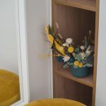 Композиция из сухоцветов и стабилизированных цветов жёлто – изумрудная