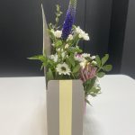 Вероника – 2 шт.Лизиантус – 1 шт.Маттиола – 1 шт.Хризантема – 3 шт.Оазис – 1 шт.Конверт – 1 шт.зелень фисташки – 1 шт.