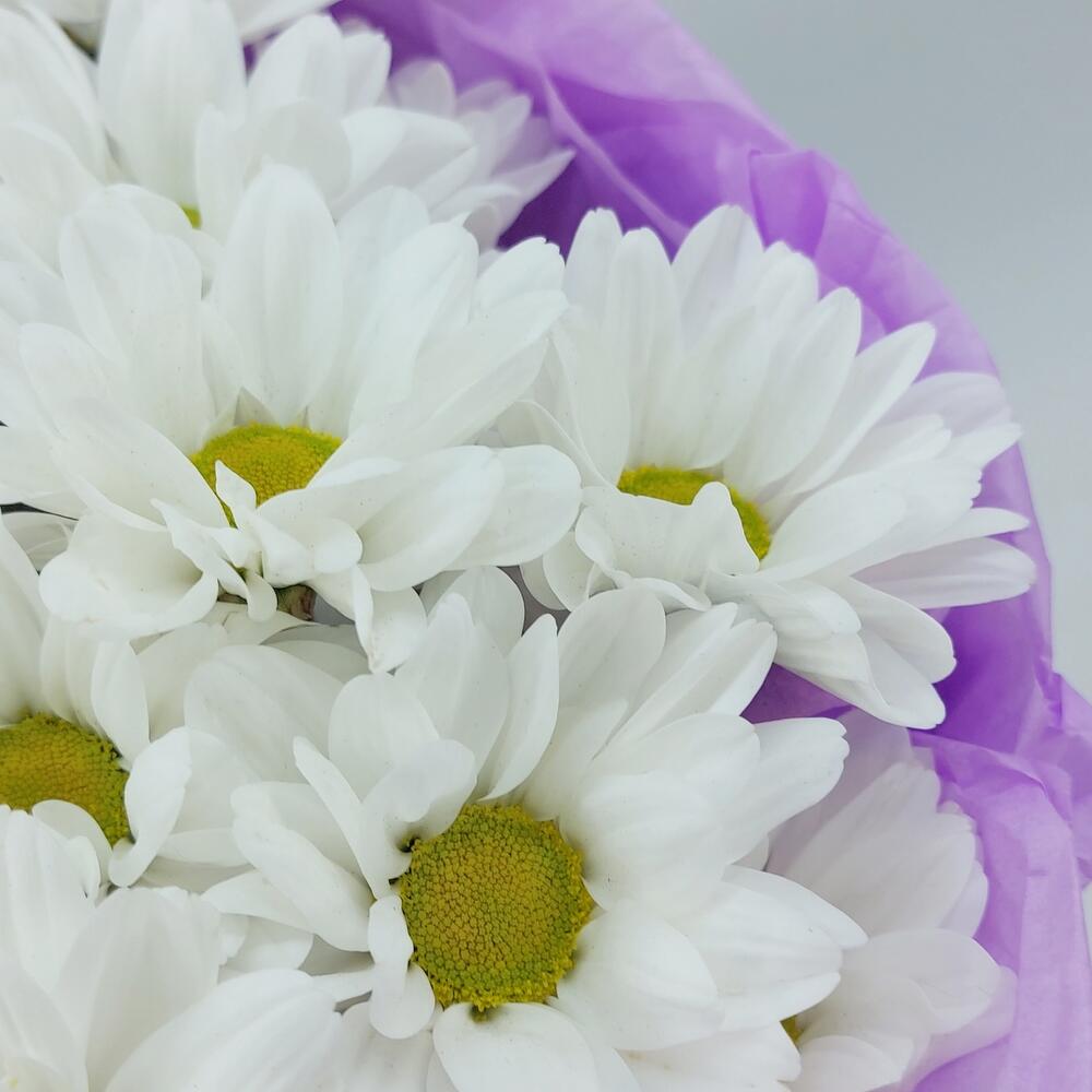Упаковка дизайнерская – 1 шт.Хризантема кустовая ромашковая – 5 шт.