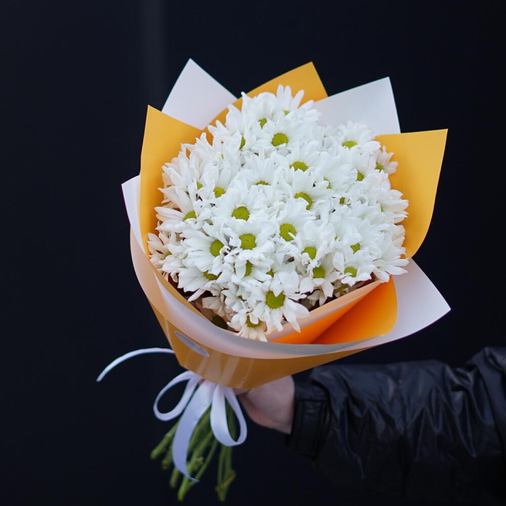 Хризантема кустовая – 7 шт. Упаковка дизайнерская – 2 шт. Открыточка с вашими пожеланиями – 1 шт. инструкция по уходу за цветами – 1 шт.