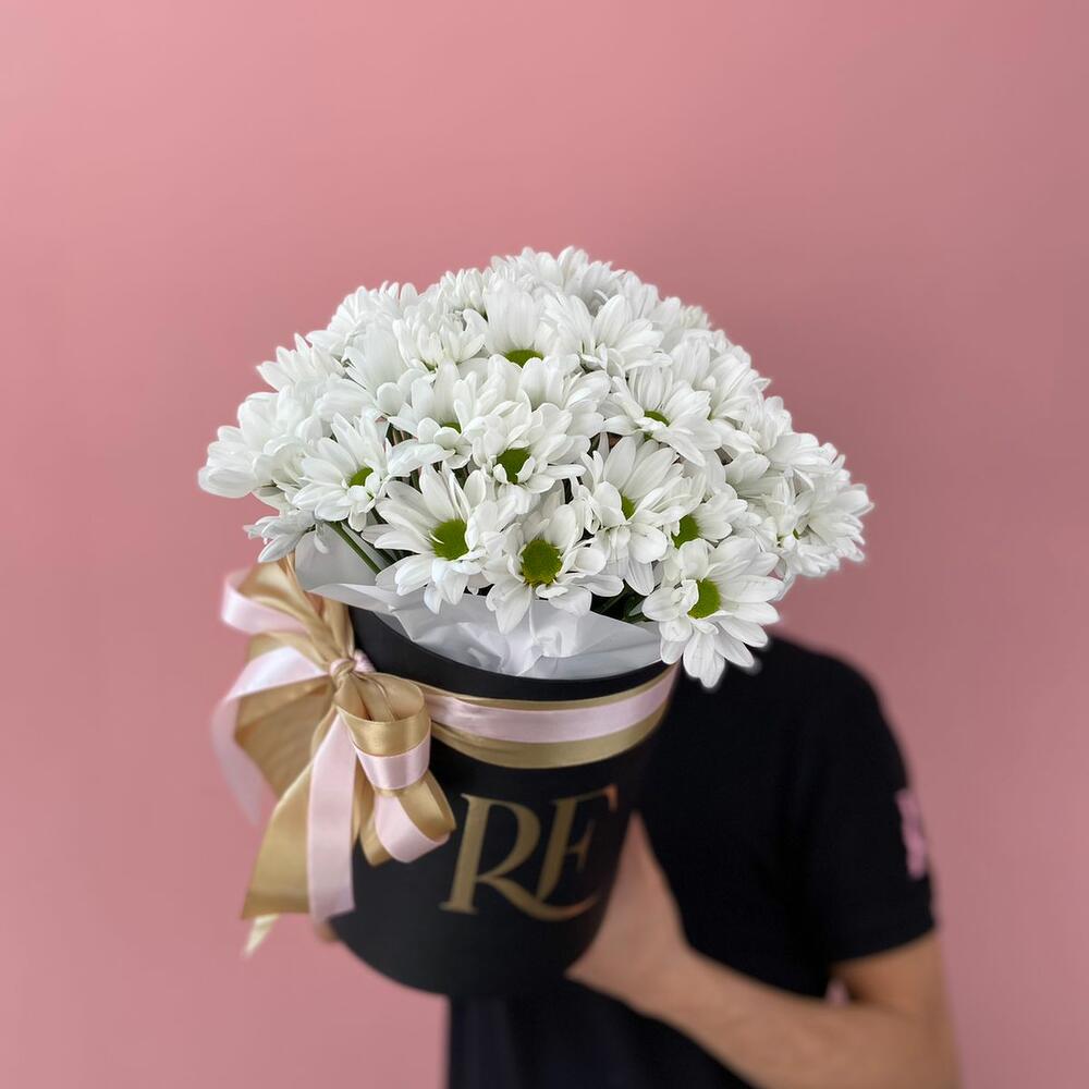 Цветочная композиция из 13 подсолнухов в шляпной коробке