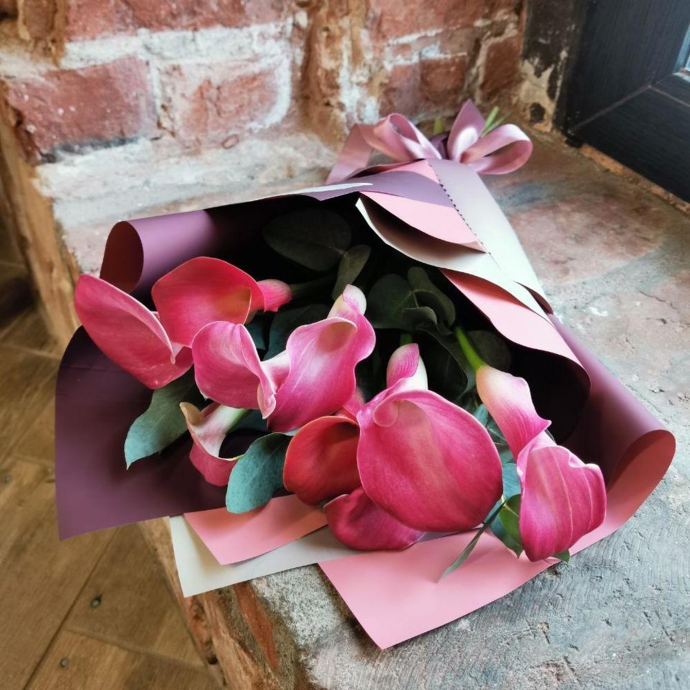 Калла – 9 шт.Эвкалипт – 2 шт.Упаковка – 2 шт.