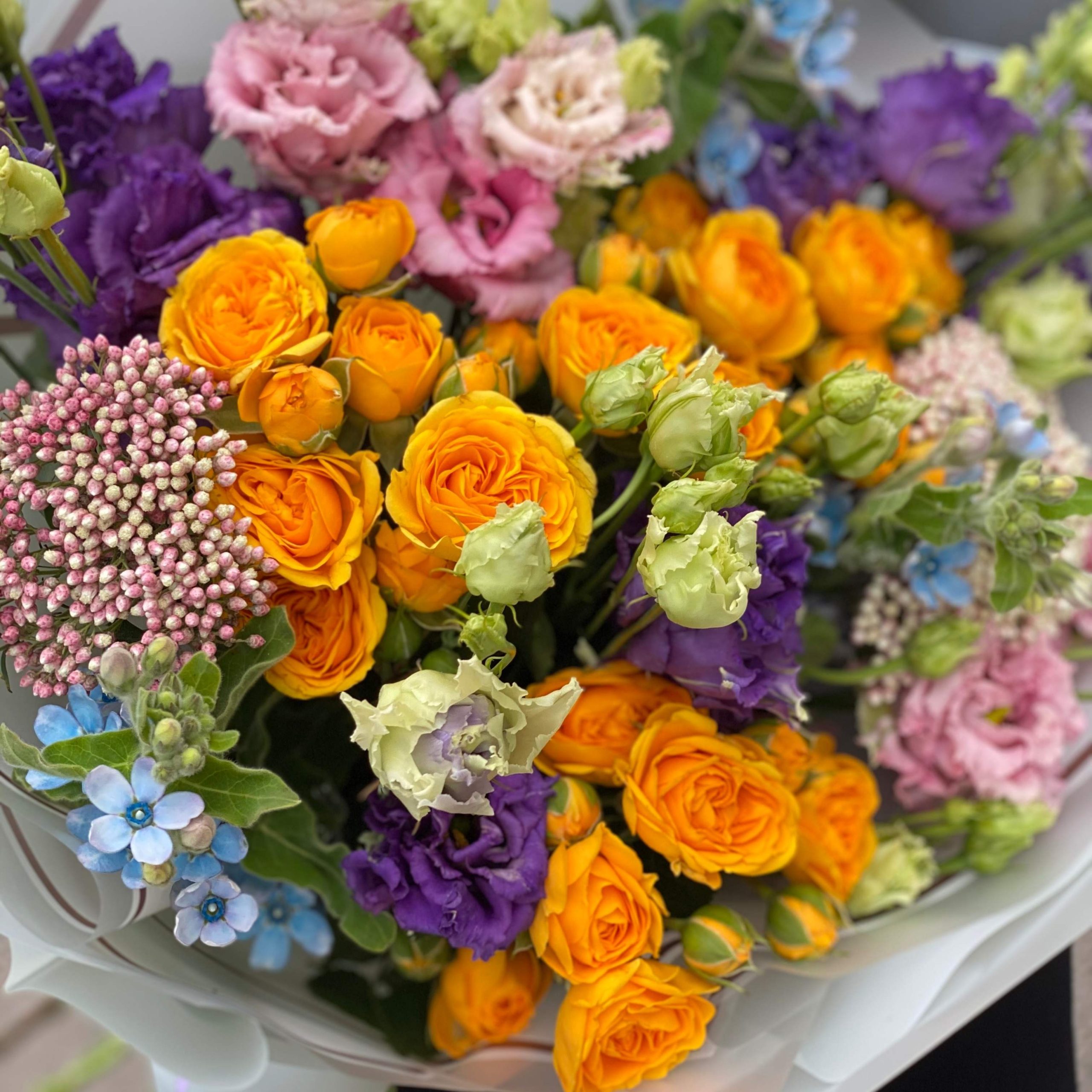 Гвоздики, Кустовые розы, Лизиантусы, Пионовидные розы, Розы
