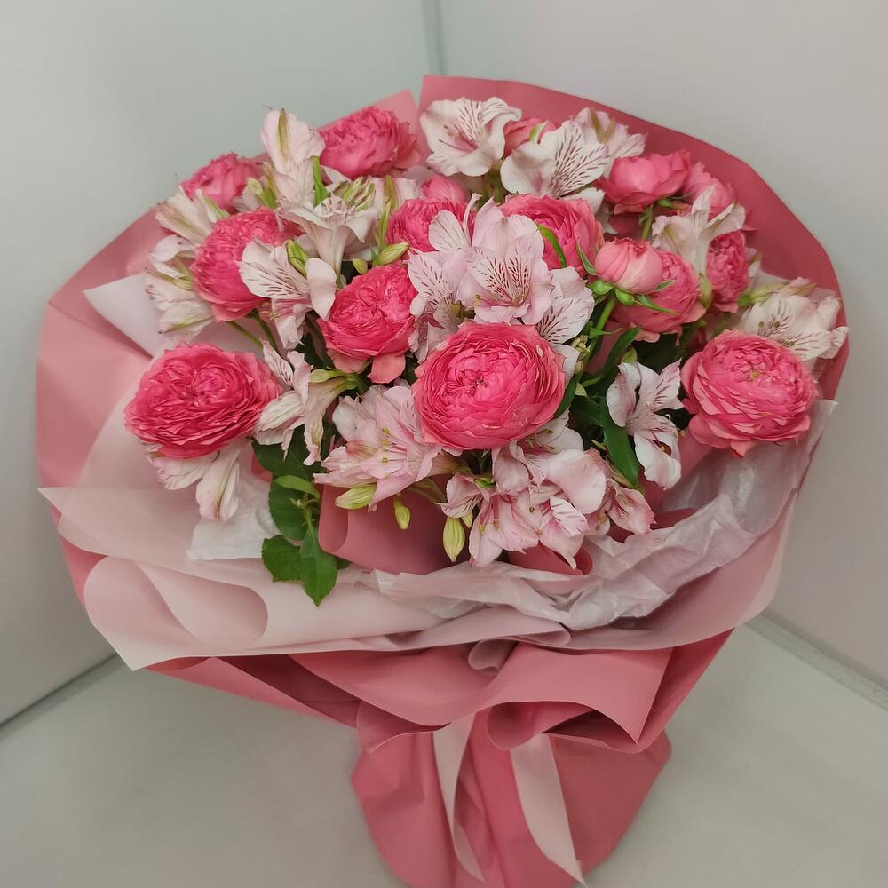 Букет из Роз пионовидных кустовых и 7 Альстромерий