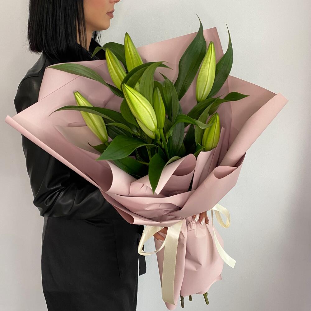 Лилия белая – 3 шт.Оформление матовая пленка – 3 шт.