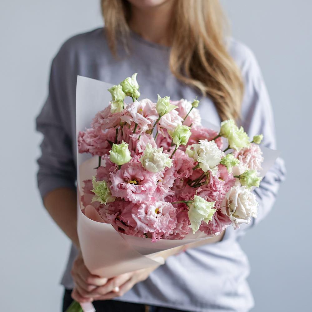 Букет из 9 розовых махровых эустом (лизиантусов) в стильной упаковке “Даниела”