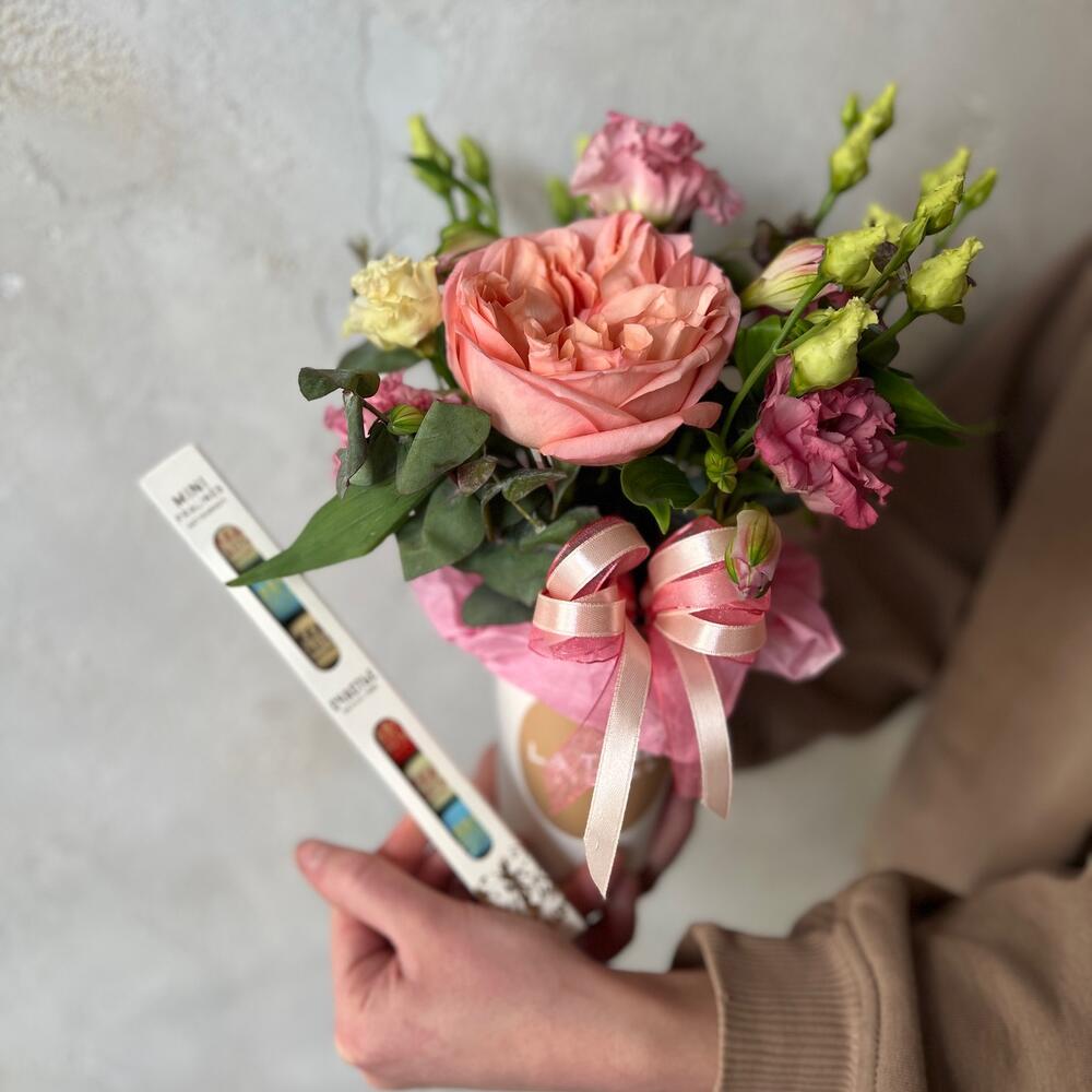 Цветочный комплимент с шоколадом “Счастье”