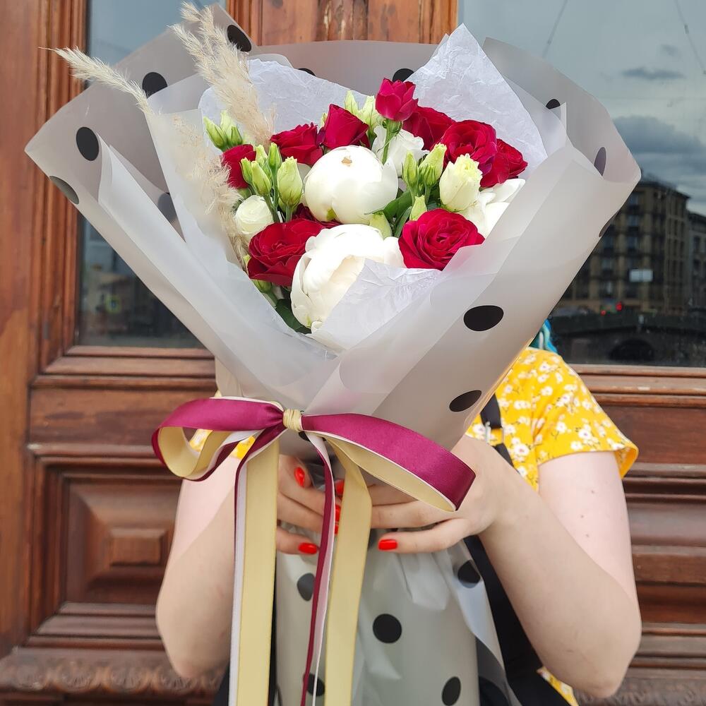 Пион белый – 3 шт.Эустома алиса – 3 шт.марун кустовая – 3 шт.