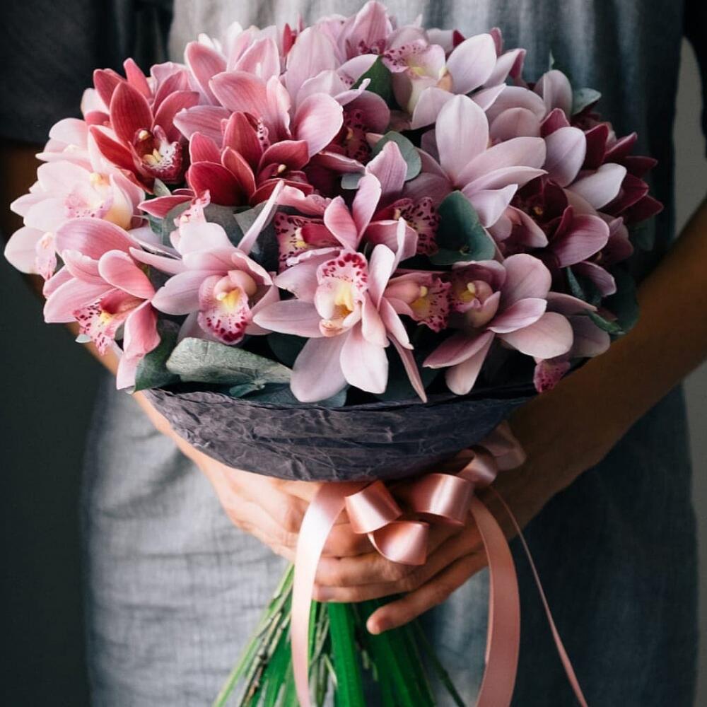 Букет из розовых Орхидей с Эвкалиптом