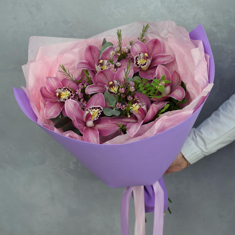 Орхидея Цимбидиум – 7 шт.Ваксфлауэр – 3 шт.Эвкалипт – 3 шт.Фисташка – 3 шт.