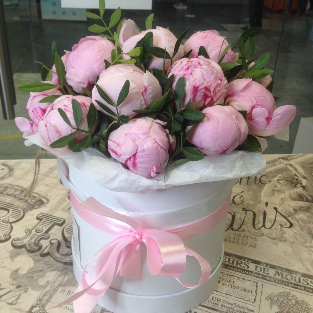 Пион Сара Бернар – 15 шт.Шляпная коробка – 1 шт.