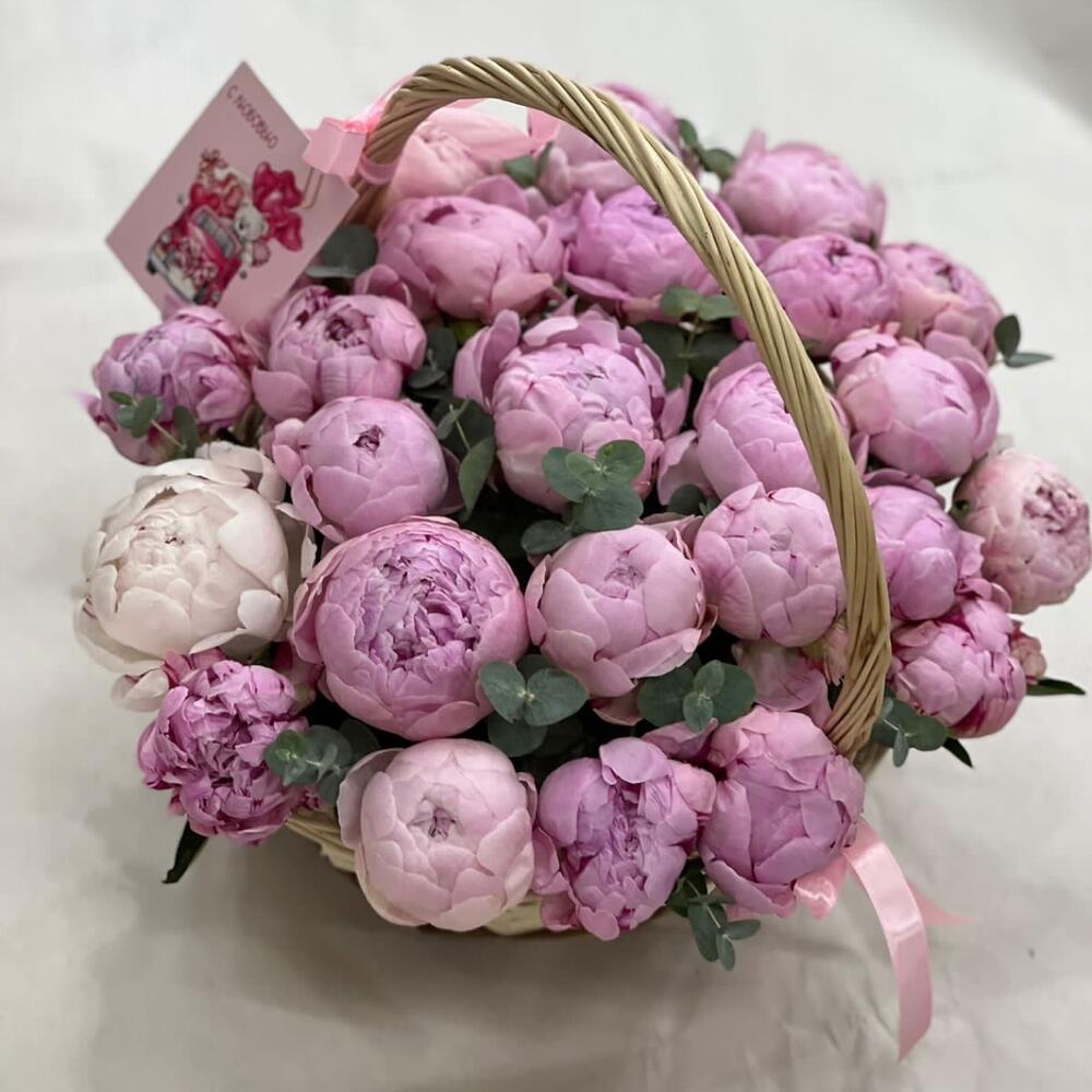 25 пионов в корзине