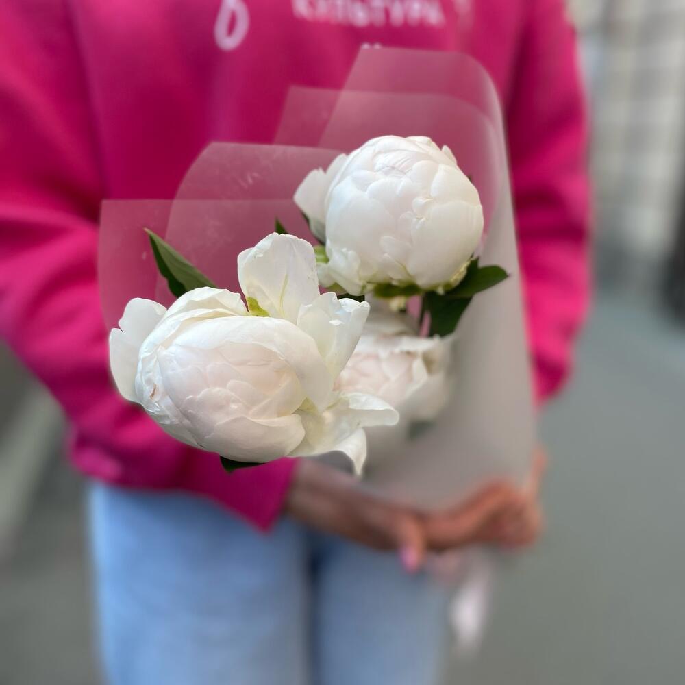 Упаковка дизайнерская – 1 шт.пионы белые – 3 шт.