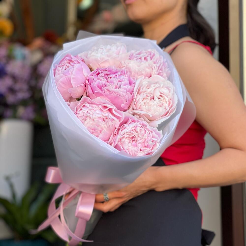 Букет из розовых пионов 5шт