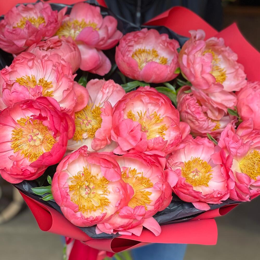 Упаковка дизайнерская – 1 шт.Коралл шарм пионы – 13 шт.