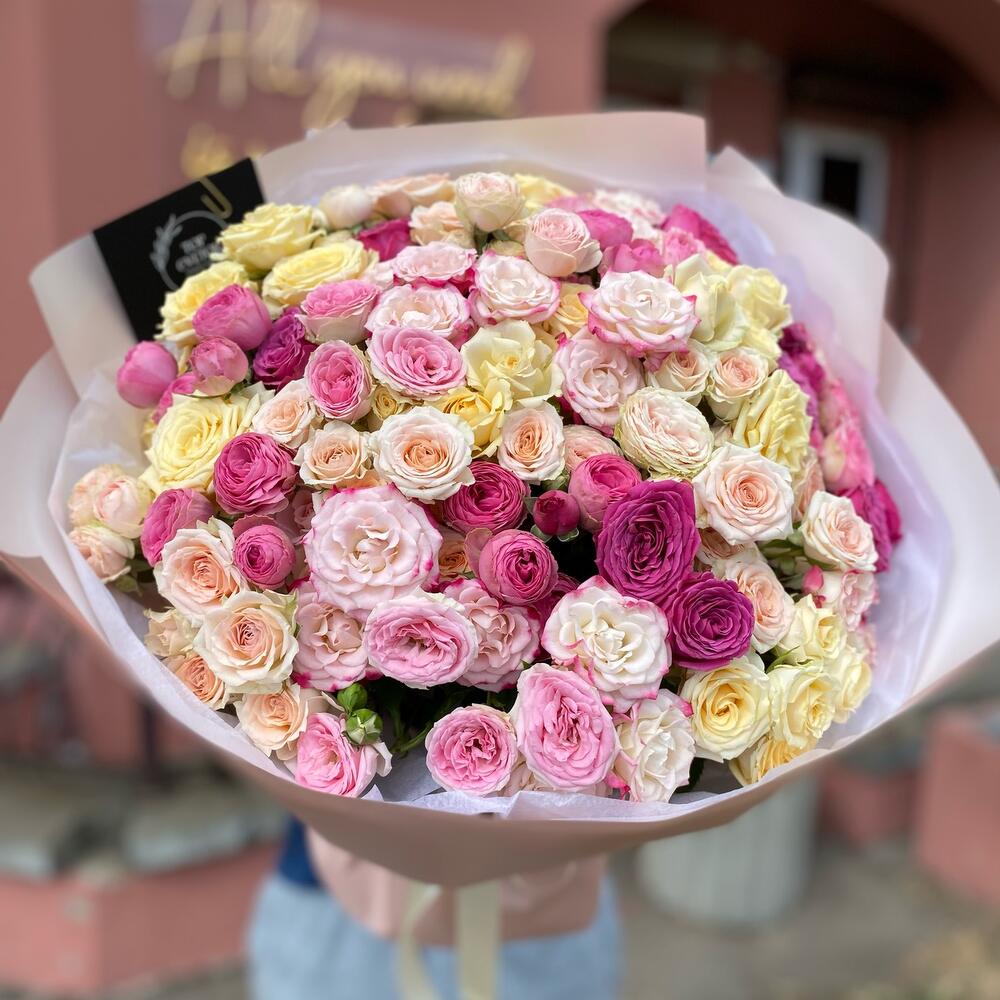Альстромерии, Кустовые розы, Лизиантусы, Пионовидные розы, Розы, Ромашки