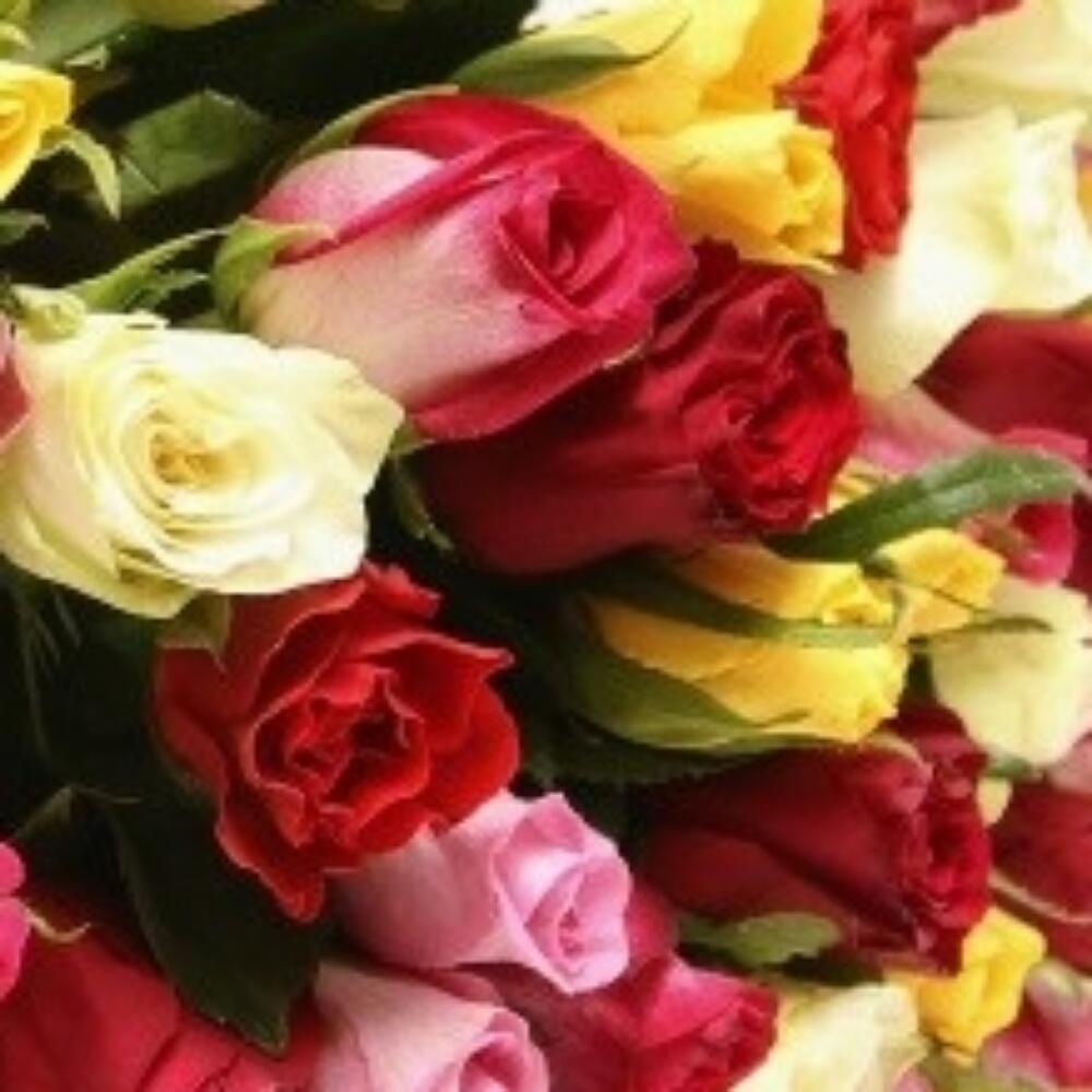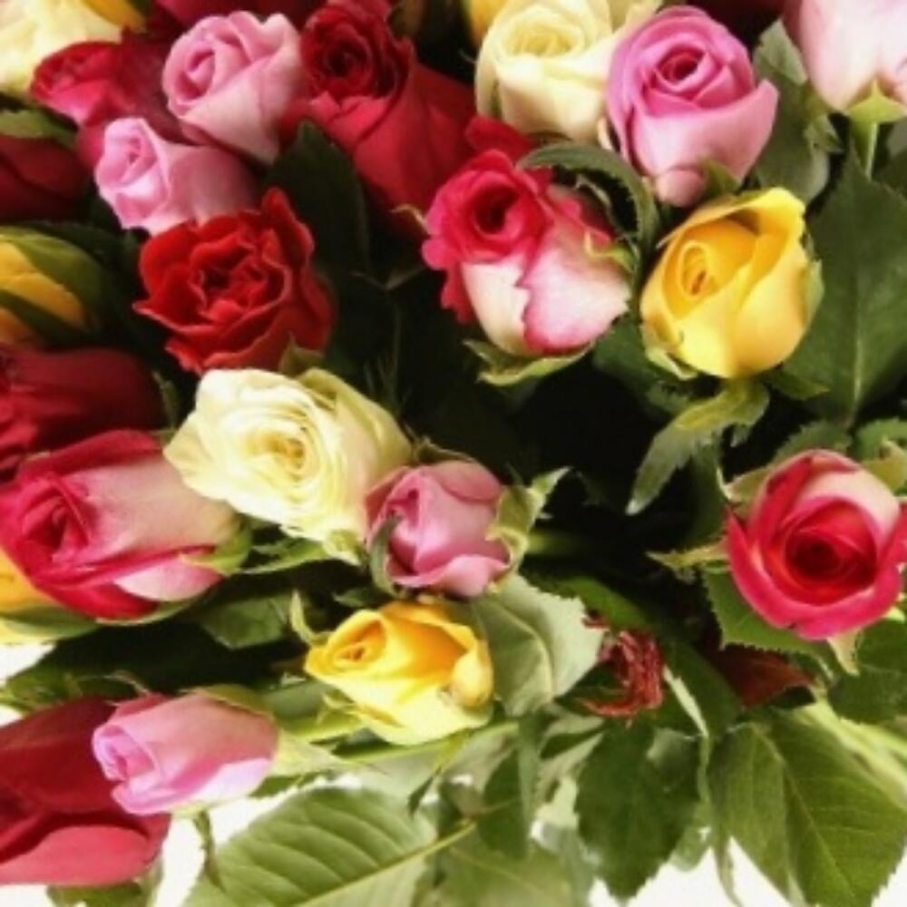 Лента атласная – 1 шт.Упаковка дизайнерская – 1 шт.роза микс – 51 шт.