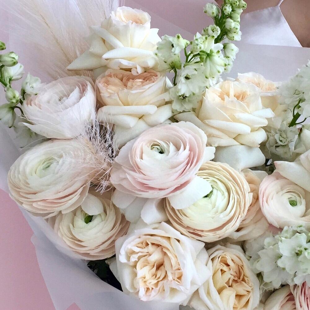Авторский букет 2. ранункулюс, пион роза, дельфиниум