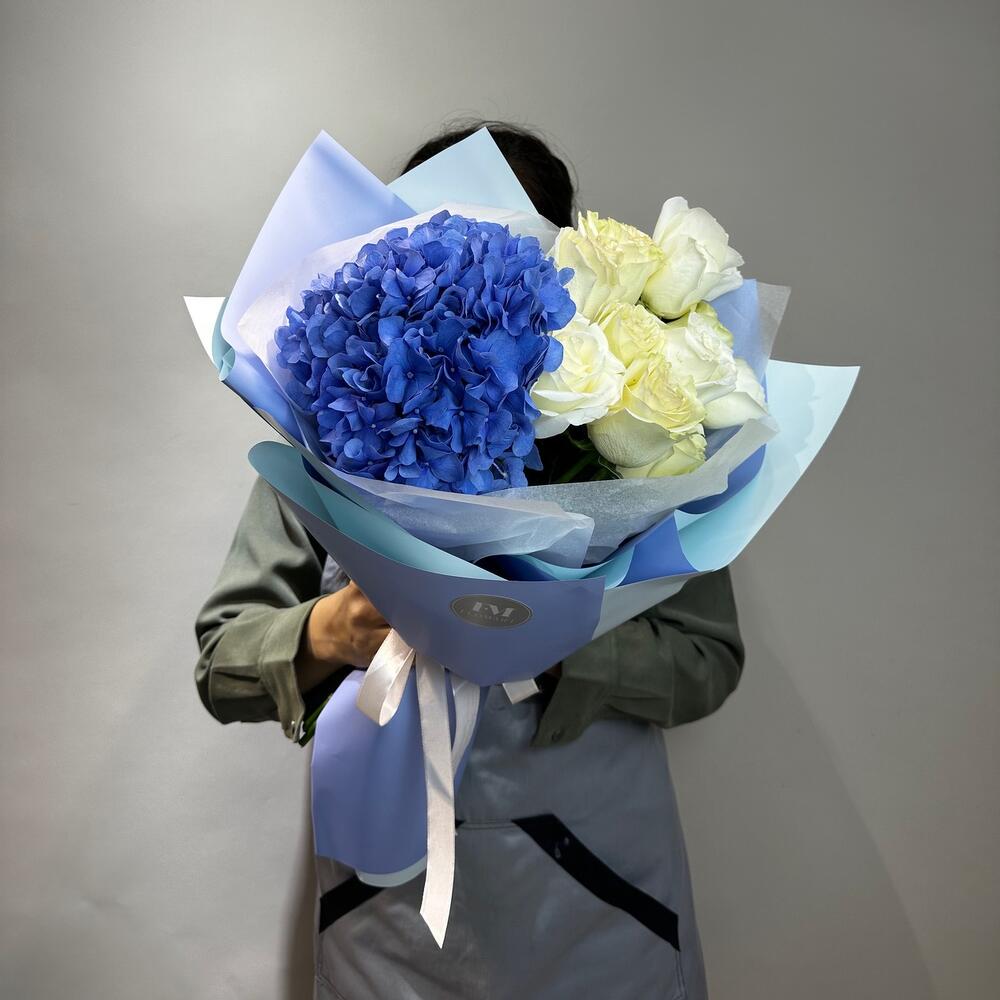 Авторский букет из королевской гортензий и белых роз