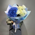Незабываемый букет из королевской гортензий и 11 белых роз для ценителей стиля и красоты